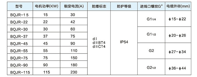 BQR系列防爆啟動器主要技術(shù)參數(shù):