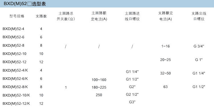 BXM(D)52系列防爆配電箱主要技術(shù)參數(shù)(100A