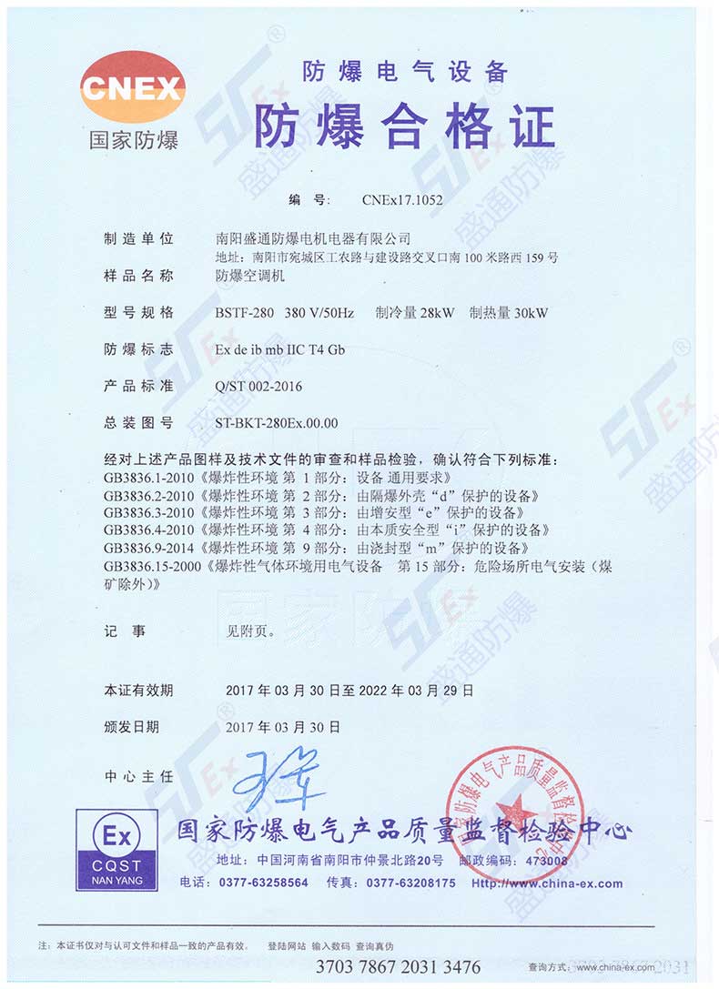 南陽(yáng)盛通防爆作為一家專(zhuān)業(yè)科研與開(kāi)發(fā)、制造、銷(xiāo)售的海爾10P防爆空調(diào)廠(chǎng)家, 防爆空調(diào)通過(guò)國(guó)家防爆電氣產(chǎn)品質(zhì)量監(jiān)督檢驗(yàn)中心認(rèn)證,如您需要購(gòu)買(mǎi)10P防爆單元式空調(diào)或者了解10P防爆單元式空調(diào)價(jià)格,請(qǐng)來(lái)電咨詢(xún)!